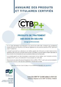 Les produits de traitement CTB-P+ sont appliqués notamment par des entreprises certifiées CTB-A+. Consulter la liste des titulaires CTB-A+